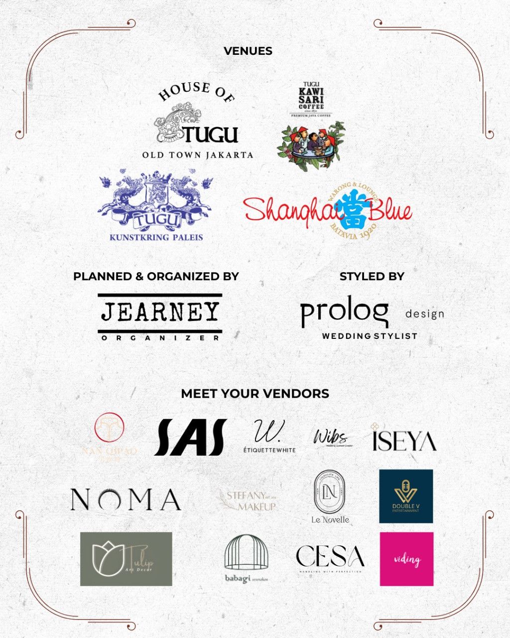 For very first time ever wedding & sangjit open house at House of Tugu Jakarta in conjunction with the first anniversary of House of Tugu Jakarta. Jearney Organizer and also prominent wedding vendors are ready to help you to realize your wedding dream with unique venue in Jakarta.